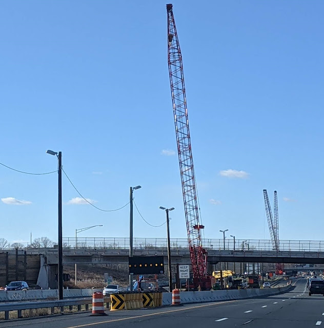 Here is a view of that that same work from the Creek Road overpass. Creek road will eventually shift over into this area when the new part of the overpass is built.